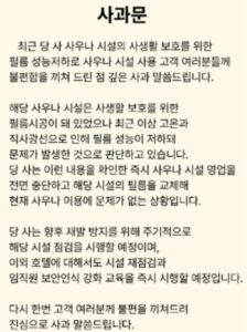 ホテル側は「直ちにサウナ施設の営業を中止しフィルムを交換した」とし、「再発防止のために定期的に施設点検を行い、他のホテルに対しても再点検と職員のセキュリティ意識強化教育を実施する予定だ。お客様にお詫び申し上げる」と明らかにした。