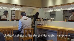 その店は貝出汁のラーメンと貝ごはんを出す店で、韓国人観光客の間でも“うまい店”として知られているという。小さなテーブルが数席とカウンター席だけのこぢんまりした店で、普段から行列ができることで知られるとされる。