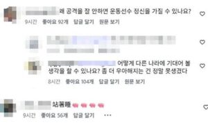 しかし試合直後、ムン・ボギョンのSNSには数万人の台湾ネットユーザーが悪質コメントを書き込み始めた。彼が試合写真とともに「行こう、マイアミへ」と投稿した文章のコメント欄には「韓国人は役に立たない」「韓国はひどい国だ」「ベスト8に行ってもすぐ敗退するだろう」などの嘲笑コメントが並んだ。