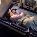 アメリカのユナイテッド航空が、横になって移動できるエコノミー席を導入します。ユナイテッド航空は25日、公式Xアカウントに「これからは座席一列を心ゆくまでお使いください」と投稿し、来年からリラックス・ロウ(United Relax Row)座席を導入すると発表しました。この座席は、3つの座席をベッドのように一つに繋げられるように設計されています。各座席のフットレストを上げると、横になれるベッドが作られます。マットレスパッドと毛布、枕2つも提供されます。子供連れの場合には人形ももらえます。ユナイテッド航空は2027年から長距離路線を利用する家族連れなどを対象に、このオプションを提供する計画です。ボーイング787と777型機に搭載する予定で、2030年までに200機以上に拡大する計画です。ベッド型座席は、航空機1機あたり最大12席が配置されます。既存のエコノミー席とプレミアムエコノミー席の間に配置される予定です。利用料金やペット同伴の可否などの詳細は、サービス開始に合わせて公開される予定です。