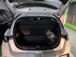 室内空間は期待以上だった。ホイールベースは2700mmで、現代アバンテ(2720mm)と同等レベル。後部座席に大人が座っても足元は広く、シートを倒せばゴルフバッグとキャディバッグをそれぞれ2個ずつ積めるほどの積載スペースが確保されている。体感的には小型SUVに近い。