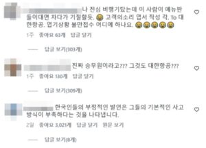 彼女は「かつては夢であり、後には教訓となったKE(大韓航空)」という文とともに同僚との写真を共有した。しかし投稿後、コメント欄には韓国語による中傷が相次いだ。